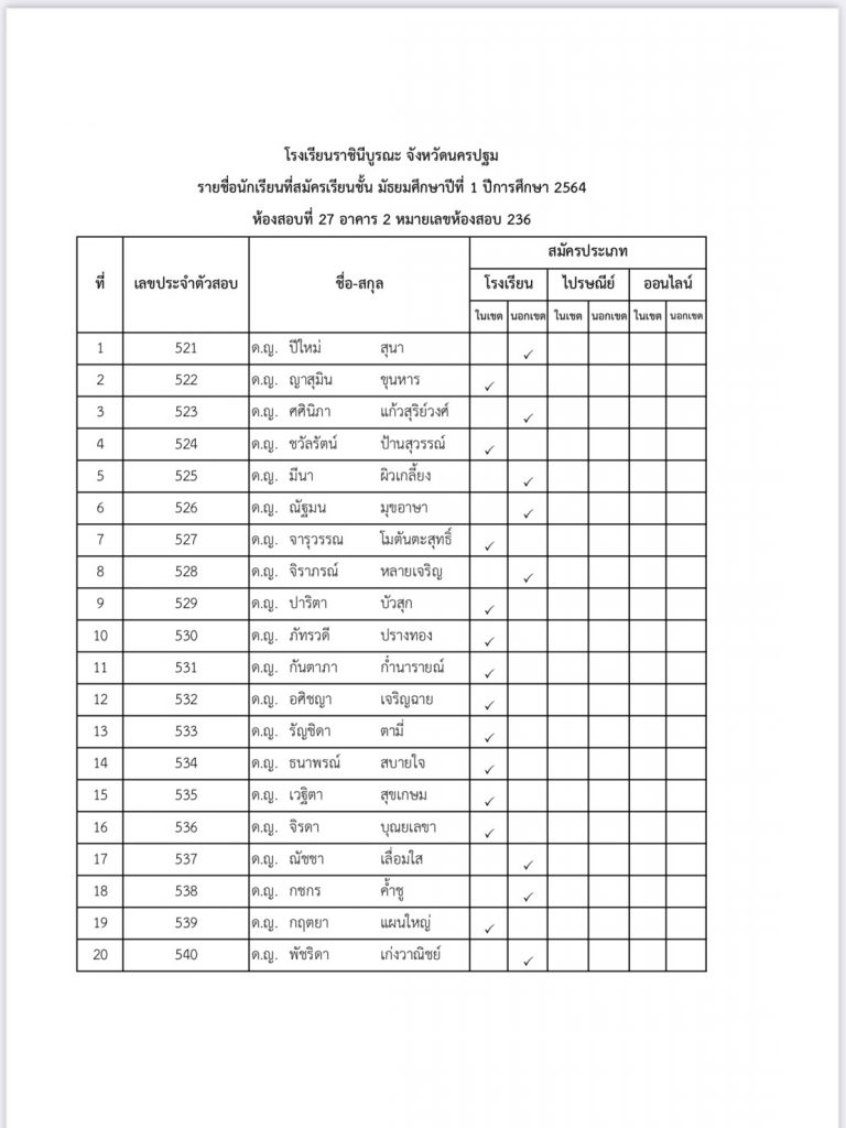 ตรวจสอบรายชื่อและผลการรับสมัครชั้น ม.1 ข้อมูล ณ วันที่ 28 เมษายน 2564