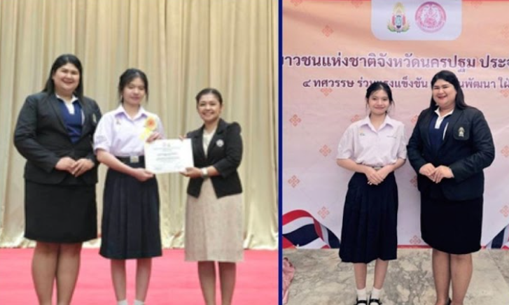 ขอแสดงความยินดีกับนักเรียนที่ได้รับรางวัลรองชนะเลิศอันดับ 1 การประกวดการพูดต่อสาธารณชน ระดับมัธยมศึกษาตอนปลาย เนื่องในวันเยาวชนแห่งชาติ จังหวัดนครปฐม ประจําปี 2568