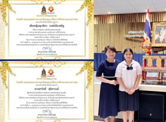ขอแสดงความยินดีกับเด็กหญิงญาติกา เวชช์ประเสริฐ ชั้นมัธยมศึกษาปีที่ 1/9 ได้รับรางวัลดีเด่น ระดับมัธยมศึกษาตอนต้น โครงการ “เสนาะกรรณวัณณนา เทิดพระบารมีเจ้าฟ้าองค์สิริศิลปิน” การประกวดอ่านทํานองเสนาะและขับเสภา ครั้งที่ 9/2568 ชิงโล่พระราชทานสมเด็จพระเจ้าน้องนางเธอ กรมพระสวางควัฒน์ วรขัตติยราชนารี จัดโดยชมรมเสนาะกรรณวัณณนาเพื่อการศึกษาและเยาวชน ร่วมกับกระทรวงวัฒนธรรม สนับสนุนโครงการโดยสํานักพระคลังข้างที่
