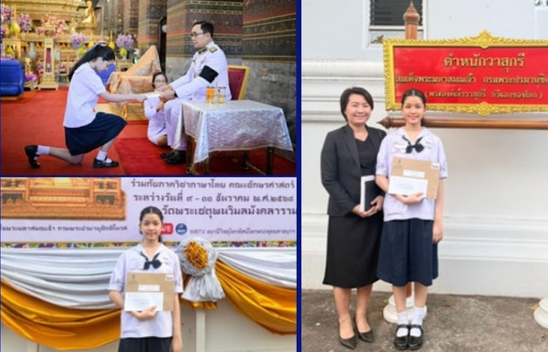 ขอแสดงความยินดีกับนางสาวลลิตา วงศ์สุวัฒน์ ชั้นมัธยมศึกษาปีที่ 3/1 เข้ารับพระราชทานเกียรติบัตร และทุนการศึกษา รางวัลชมเชย การประกวดอ่านร้อยแก้ว ระดับมัธยมศึกษาตอนต้น จากพลเอกประยุทธ์ จันทร์โอชา องคมนตรีผู้แทนพระองค์ เนื่องในงานวันกรมสมเด็จพระปรมานุชิตชิโนรส ประจําปี 2568