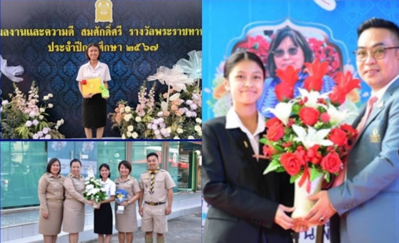 ขอแสดงความยินดีกับนางสาวศิรัญญา โหละยะวงศ์ นักเรียนรางวัลพระราชทาน ระดับมัธยมศึกษาตอนปลาย ปีการศึกษา 2567 เข้ารับรางวัลพระราชทาน จากพลเอก ดาว์พงษ์ รัตนสุวรรณ องคมนตรี ผู้แทนพระองค์ ณ ศาลาดุสิดาลัย สวนจิตรลดา