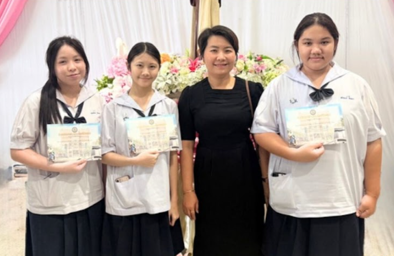 ขอแสดงความยินดีกับเด็กหญิงโสวิชญา พ่วงทอง ชั้นมัธยมศึกษาปีที่ 2/1 เด็กหญิงสิริวิกรม์ อินจนา ชั้นมัธยมศึกษาปีที่ 2/1 เด็กหญิงธวัลรัตน์ ฉ่ำเชย ชั้นมัธยมศึกษาปีที่ 2/1 ได้รับเกียรติบัตรรางวัลเหรียญทอง อันดับ 2 การแข่งขันพาทีสร้างสรรค์ ระดับ ม.1- ม.3 งานเปิดโลกวิชาการบ้านกสิณธร ครั้งที่ 24 ชิงโล่รางวัลพลเอกสุรยุทธ์ จุลานนท์ ฝึกซ้อมโดย ครูสาวิตรี สุริยาวงษ์