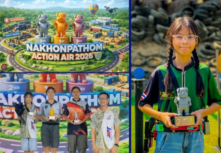 ขอแสดงความยินดีกับเด็กหญิงธัณย์สิตา เถาตะกู ชั้นมัธยมศึกษาปีที่ 1/5 ได้รับรางวัลรองชนะเลิศอันดับที่ 1 การแข่งขันปืนสั้นรณยุทธ์อัดลมเบา ประเภท Production divisions Lady grand super junior รายการ Nakhonpathom IPSC Action Air Level 2 2026 ณ สนามกีฬาเทศบาลนครนครปฐม ยิมเนเซี่ยม 4,000 ที่นั่ง