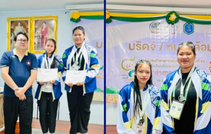 ขอแสดงความยินดีกับนางสาวสุพิชญา สุรธรรมวัฒน์ ชั้นมัธยมศึกษาปีที่ 5/3 นางสาวมนต์วารี บุตรดี ชั้นมัธยมศึกษาปีที่ 5/4 ได้รับรางวัลเหรียญเงิน การแข่งขันกีฬาบริดจ์ ประเภทคู่หญิง รายการกีฬาเยาวชนแห่งชาติ ครั้งที่ 41 รอบคัดเลือกภาค 2 “อ่างทองเกมส์” และเป็นตัวแทนนักกีฬาบริดจ์ภาค 2 เข้าสู่การแข่งขันระดับประเทศ ฝึกซ้อมโดย นางสาวปฏิญญา กฤษวงษ์ นางสาวสุทธาทินี ศรีสมุทร และนางสาววาสนา นุ่มวงษ์