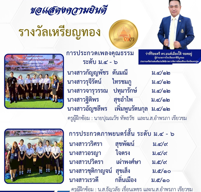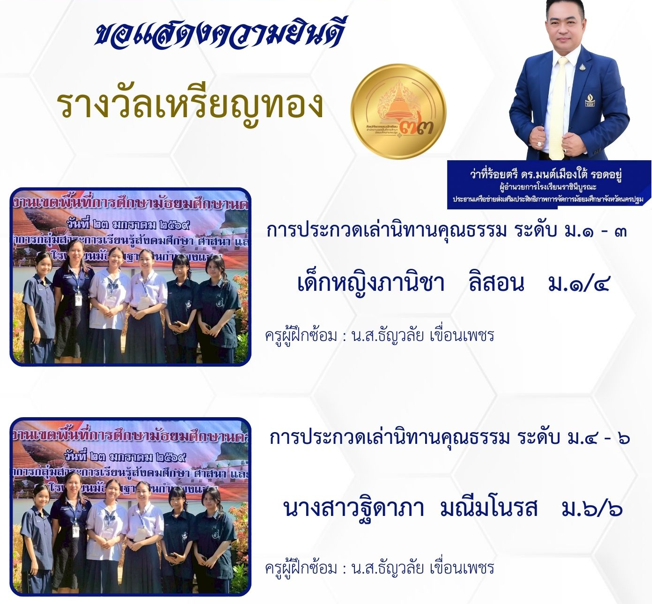 ขอแสดงความยินดีกับนักเรียนที่ได้รับรางวัลจากการแข่งขันงานศิลปหัตถกรรมนักเรียน ระดับเขตพื้นที่การศึกษา ครั้งที่ 73 ปีการศึกษา 2568