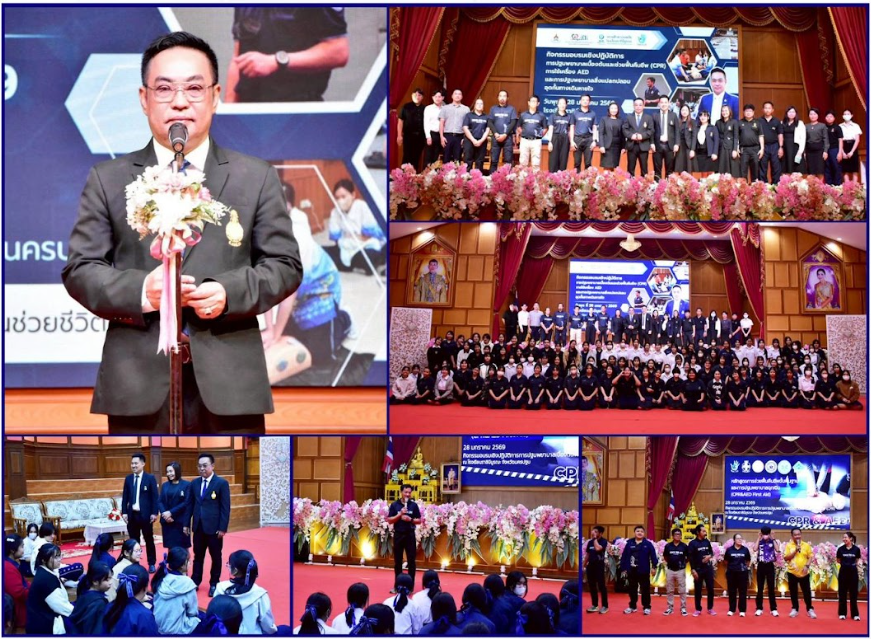 การฝึกอบรมเชิงปฏิบัติการ การปฐมพยาบาล ความปลอดภัยในสถานศึกษา และการช่วยฟื้นคืนชีพขั้นพื้นฐาน (CPR) ให้กับนักเรียนตัวแทนชุมนุม อย.น้อย และตัวแทนห้อง ระดับชั้นมัธยมศึกษาปีที่ 4-6 ณ หอประชุม 100 ปี ราชินีบูรณะ (เทพผดุงพร)