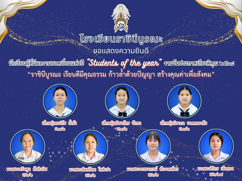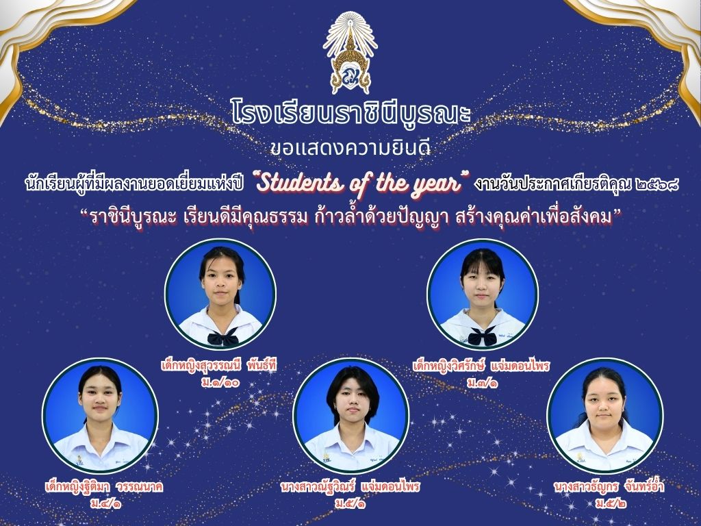 ขอแสดงความยินดีกับนักเรียนผู้ที่มีผลงานยอดเยี่ยมแห่งปี “Students of the year”