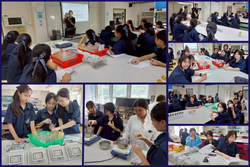 งานโครงการห้องเรียนพิเศษ ชั้นมัธยมศึกษาตอนต้น โรงเรียนราชินีบูรณะ จัดกิจกรรมเสริมทักษะการใช้เครื่องมือและอุปกรณ์วิทยาศาสตร์ (ปฏิบัติการทางเคมี – ชีววิทยา) สําหรับนักเรียนโครงการห้องเรียนพิเศษ SMTE และโครงการห้องเรียนพิเศษ SMART CLASS ชั้นม.1/1 – ม.1/3 และม.2/1 – ม.2/3 ณ คณะศิลปศาสตร์และวิทยาศาสตร์ มหาวิทยาลัยเกษตรศาสตร์ วิทยาเขตกําแพงแสน