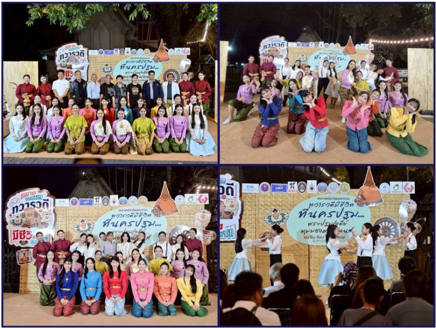 นักเรียนกิจกรรมนาฏศิลป์ไทย ร่วมแสดงชุด “วิถีสู่ศิลป์ ยลยินริมคลองเจดีย์บูชา” ในงานตลาดวัฒนธรรมทวาราวดี มีชีวิต ที่นครปฐม ณ ลานด้านข้างพิพิธภัณฑสถานแห่งชาติพระปฐมเจดีย์