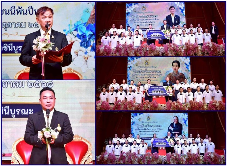 พิธีมอบทุนการศึกษา จํานวน 2,598,500 บาท เนื่องในวันคล้ายวันสวรรคตสมเด็จพระศรีพัชรินทรา บรมราชินีนาถ พระบรมราชชนนีพันปีหลวง ประจําปี 2568 ณ หอประชุม 100 ปี ราชินีบูรณะ (เทพผดุงพร)